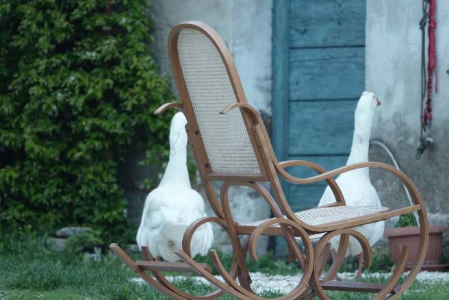 Due oche passeggiano intorno alla casa, di mattina si lavano alla bacinella, marciano fiere tra di noi, padrone di casa, mettono in fuga il gallo e qualche volta soffiano a chi si avvicina troppo. Un grosso cane bianco, Bartolomeo, si lascia andare a tenere e diffuse carezze, si aggira placido, abbaiando di guardia di tanto in tanto. Con Eustochia/Papavero è invece arrivata la piccola Zolla, che scatta di qua e di là dal cerchio, annusa, si ambienta.