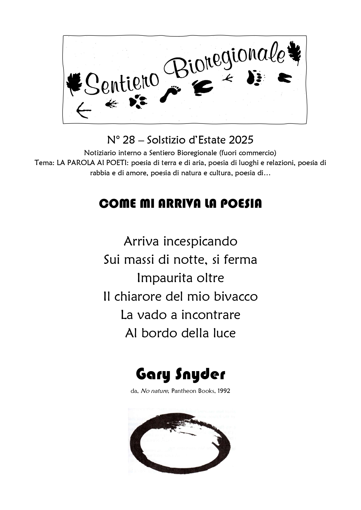 Notiziario interno a Sentiero Bioregionale, con redazione itinerante, esce ai Solstizi (21 Giugno e 21 Dicembre).